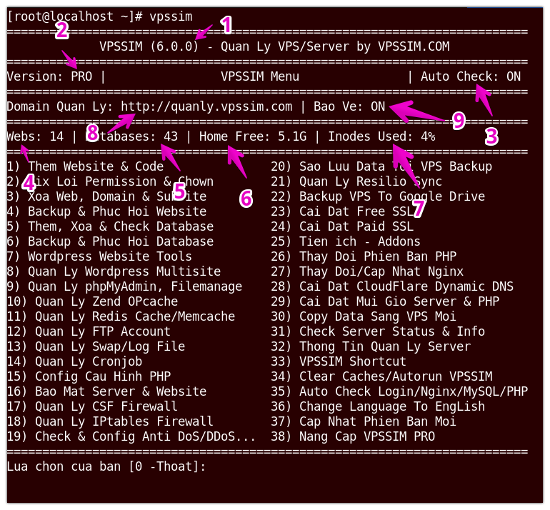 Lần này mình quyết định cập nhật VPSSIM từ 5.2.3 lên thẳng 6.0.0, bỏ qua những bản update 5.x.x lên thời gian update kéo dài hơn dự kiến. Trong các chức năng mới, mình có ghi các link hướng dẫn sử dụng nhưng hầu hết mình chưa kịp viết bài, mình sẽ viết bổ xung sau nhé. Các bạn cứ làm lần lượt theo các bước trong VPSSIM là được, rất đơn giản thôi.